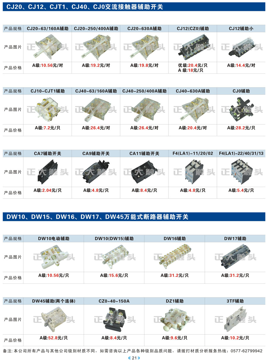 CJ20、CJ12、CJT1、CJ40、CJ0、DW10、DW15、DW16、DW17、DW45輔助開關