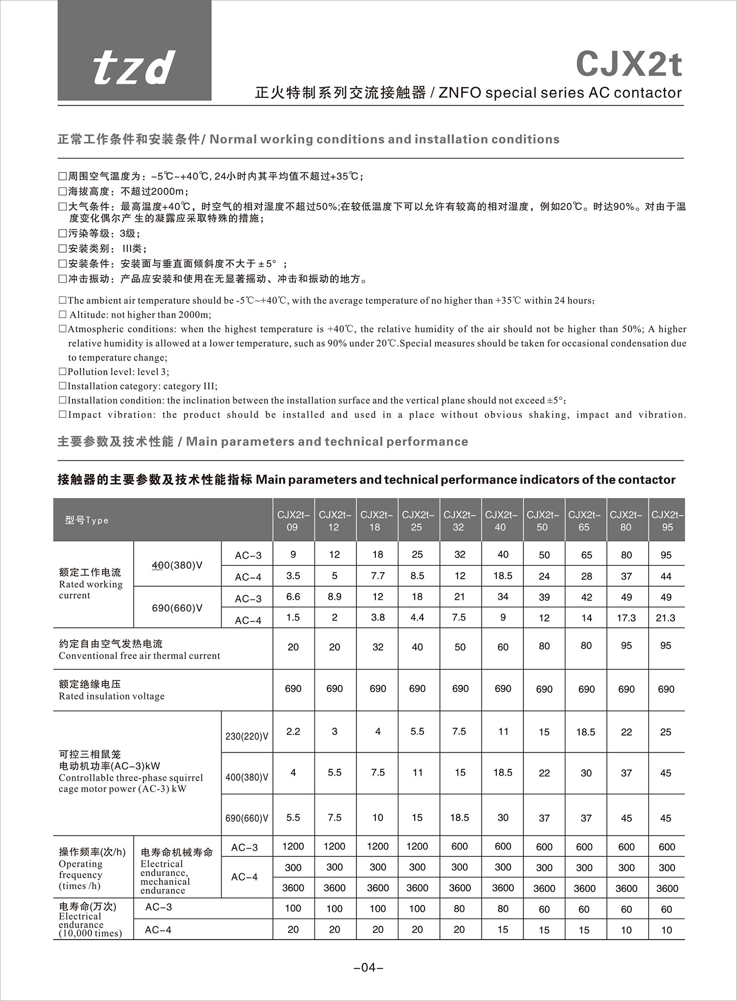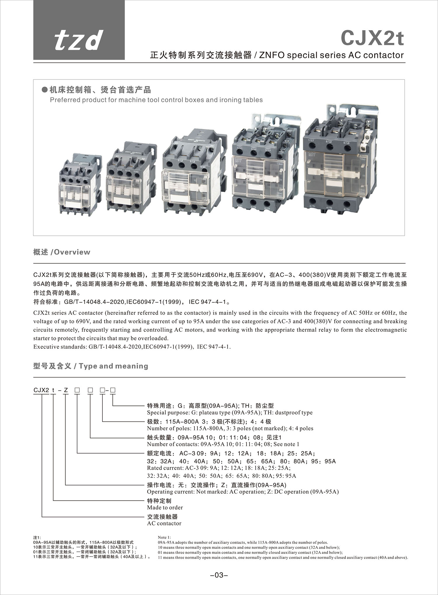 CJX2t 正火特制系列交流接觸器產品說明書
