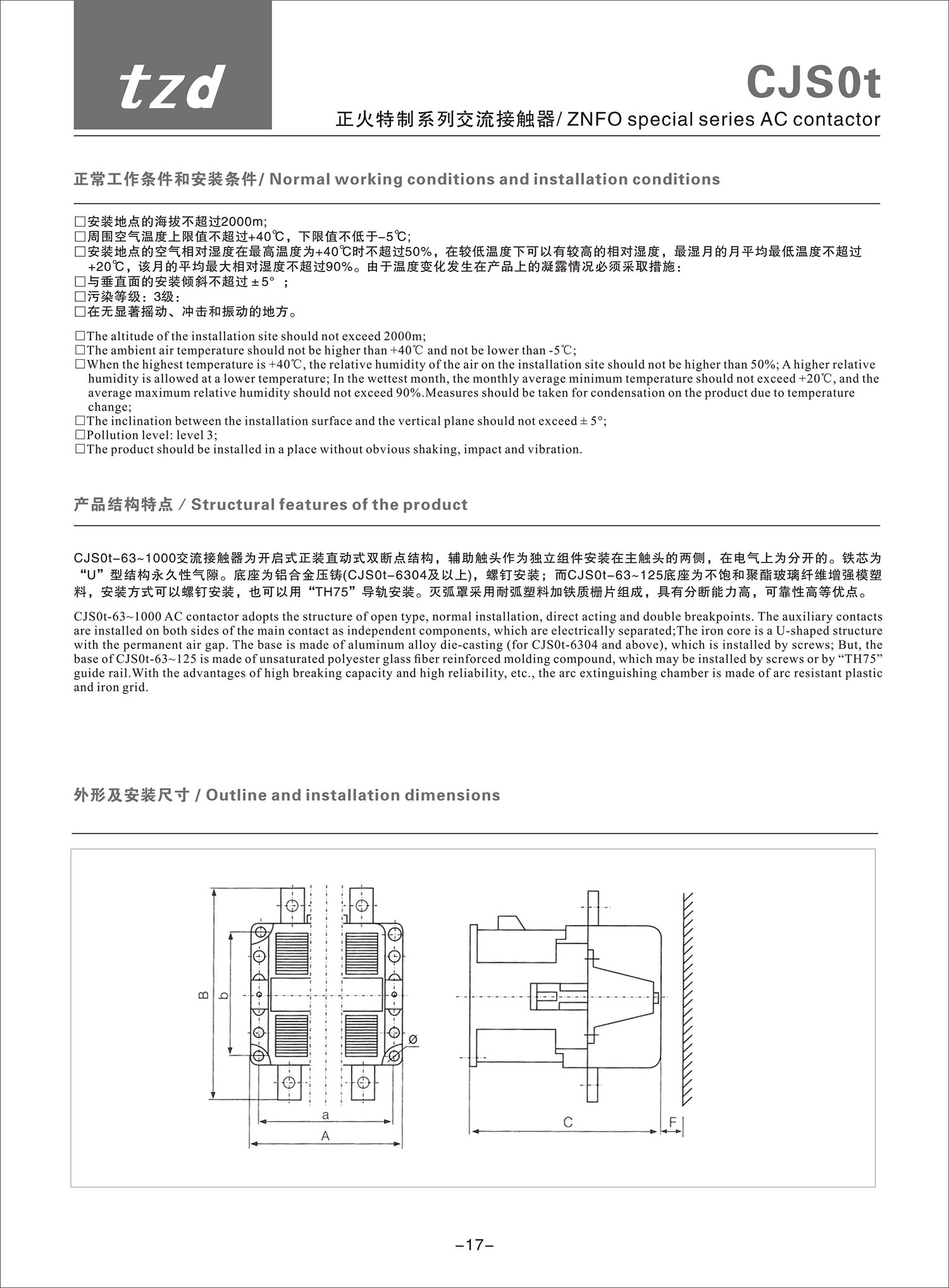 CJS0t 正火特制系列交流接觸器產品說明書