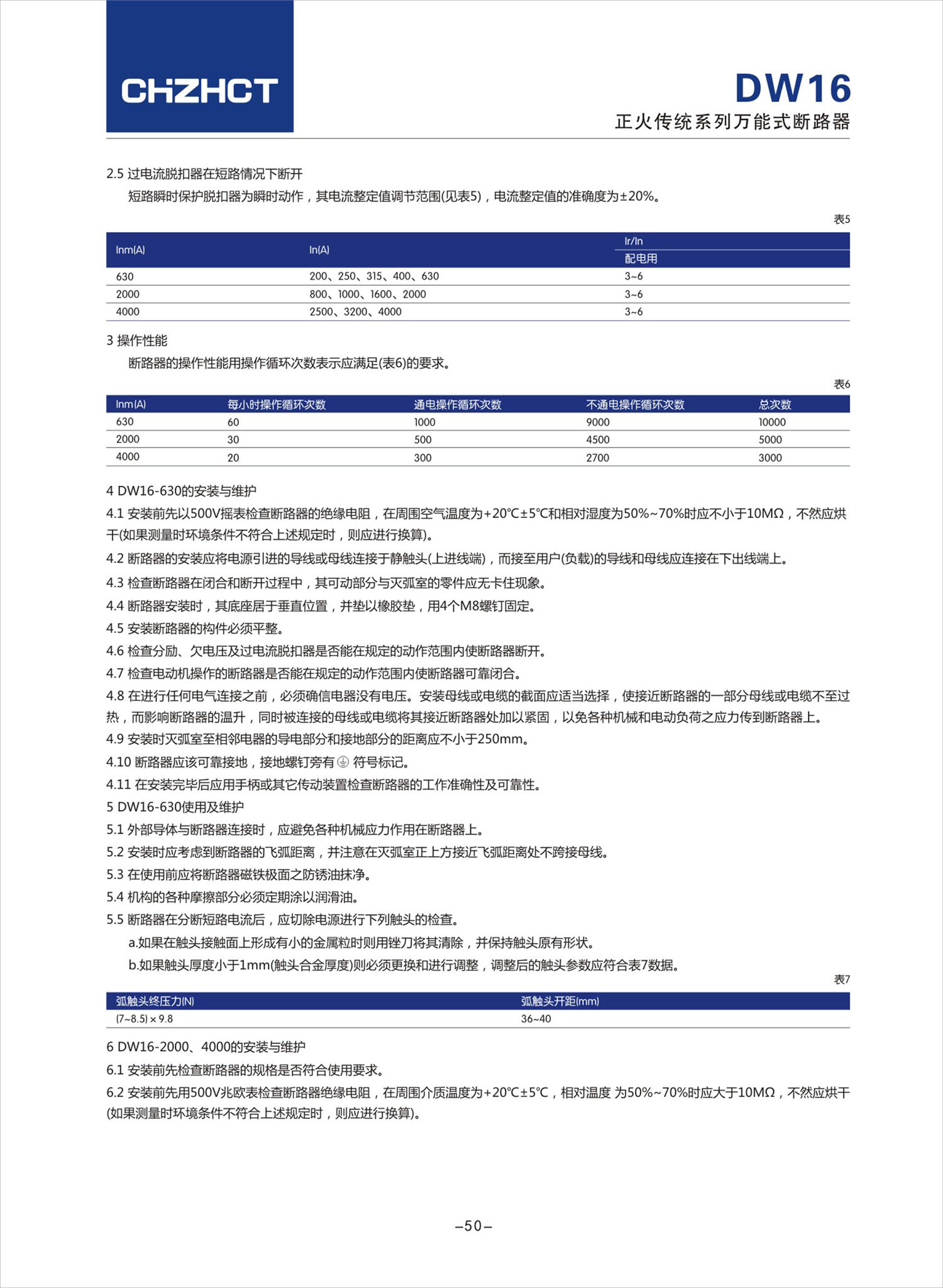 DW16 系列萬能式斷路器產品說明書