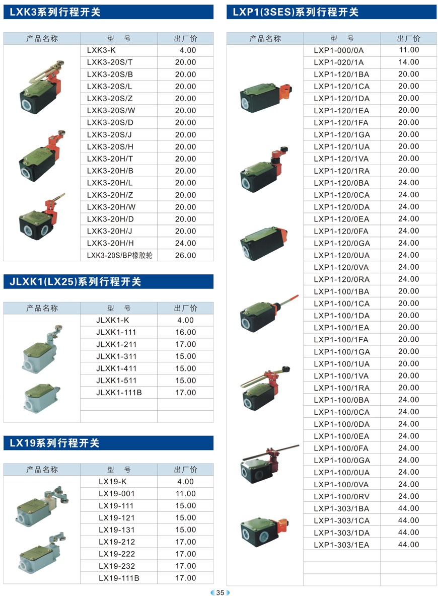LXK3、JLXK1(LX25)、LX19、LXP1(3SES)系列行程開關