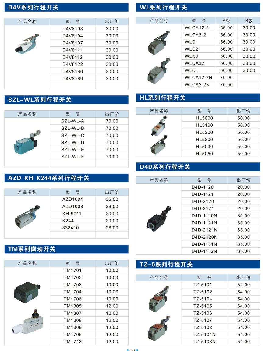 D4V、SZL-WL、AZD KH K244、TM微動、WL、HL、D4D、TZ-5系列行程開關