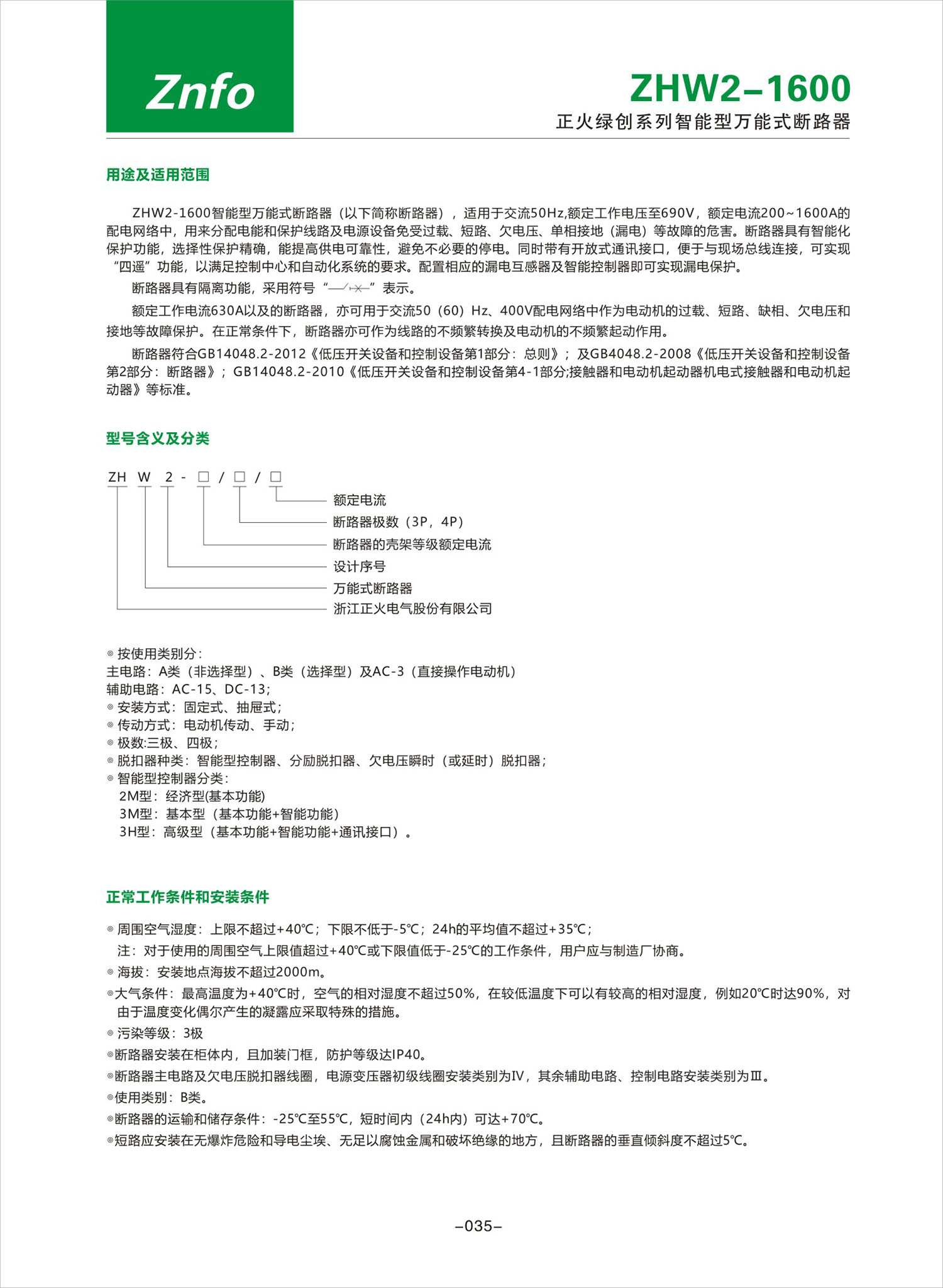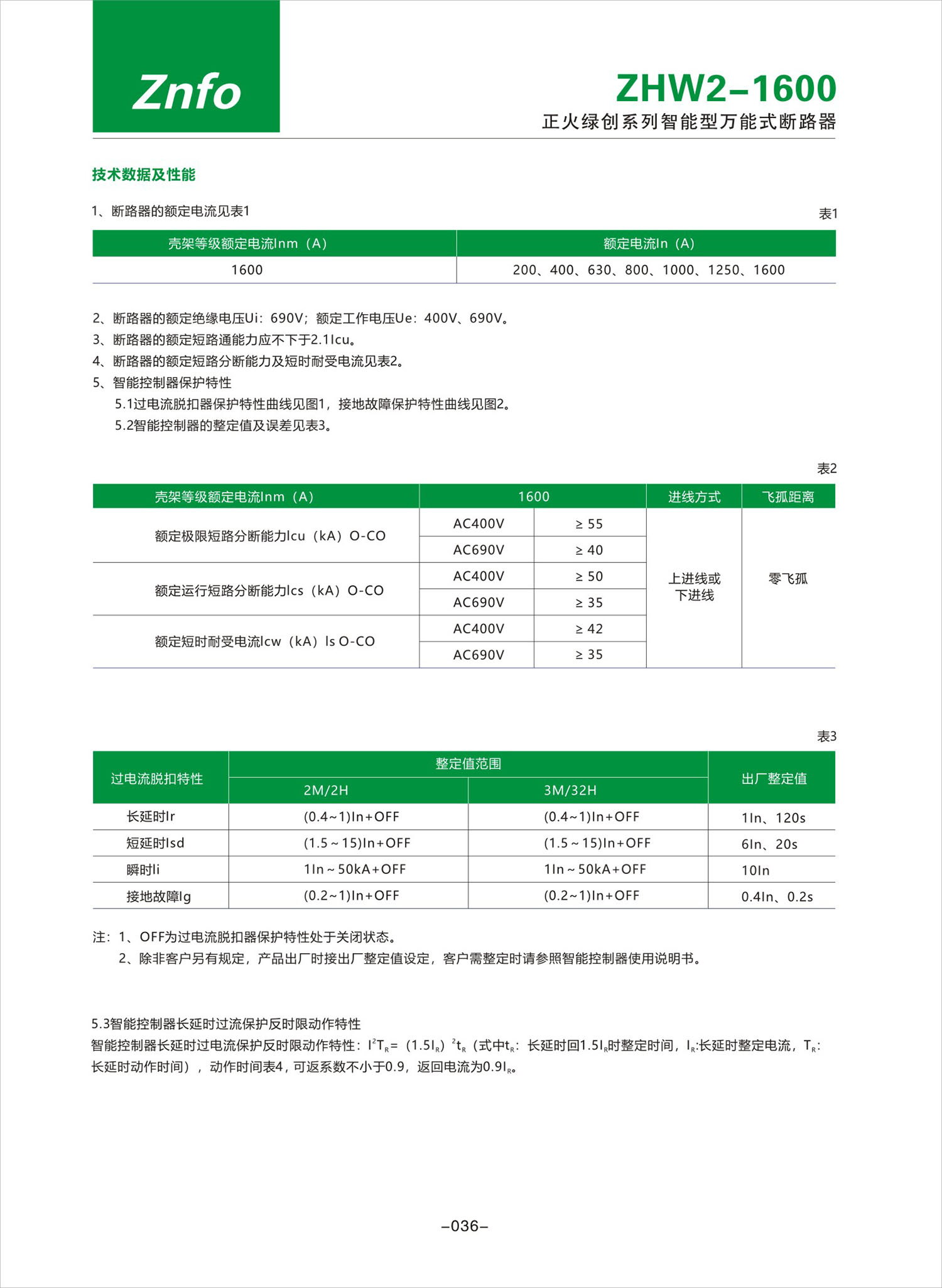 ZHW2-1600系列智能型萬能式斷路器產品說明書
